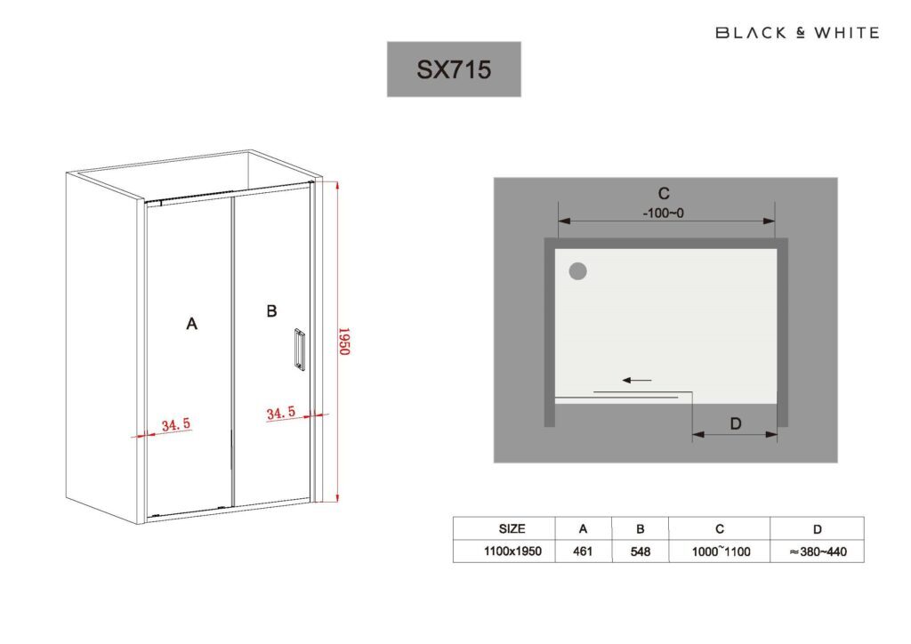 Душевая дверь в нишу Black & White SX715 Chrome 1000