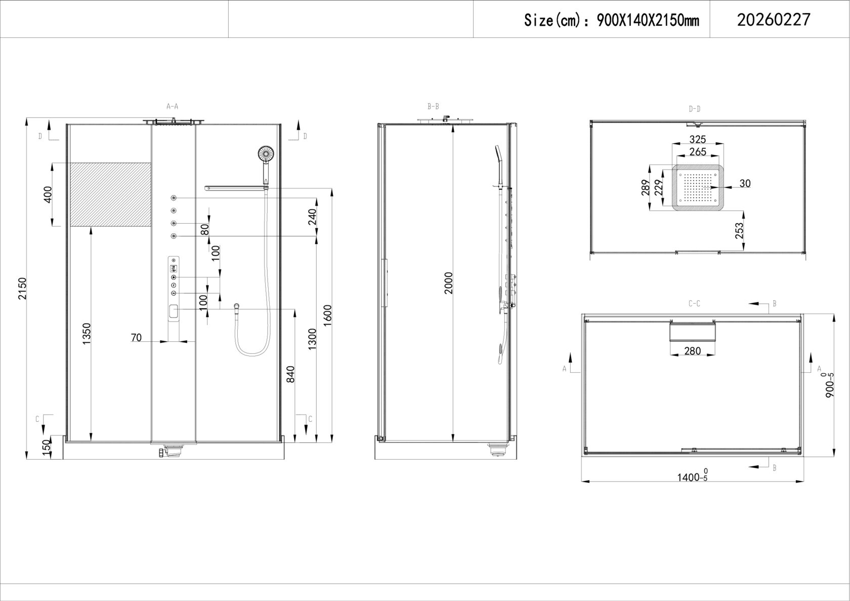 Основные характеристики- Размер: 1400 х 900 х 2140