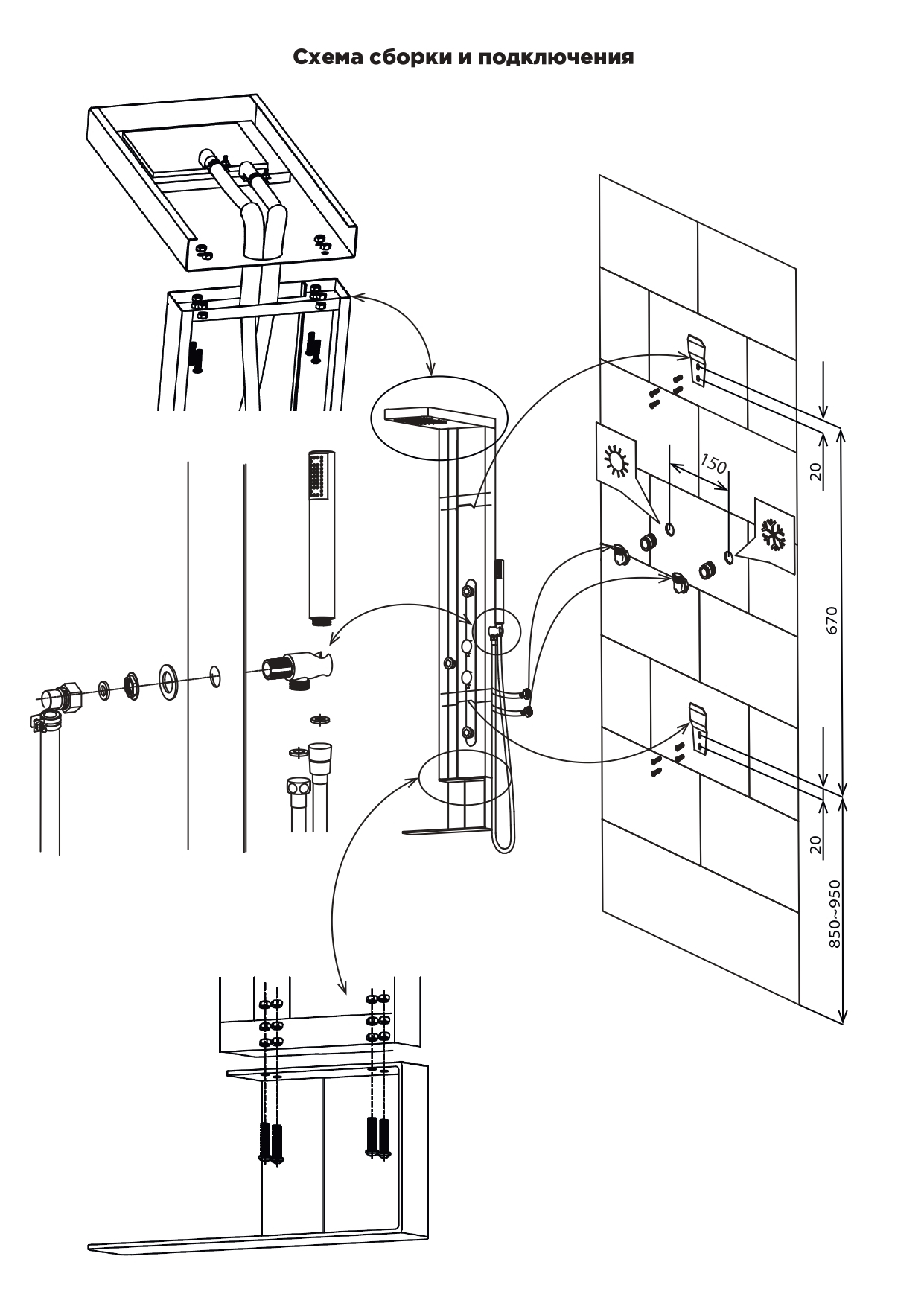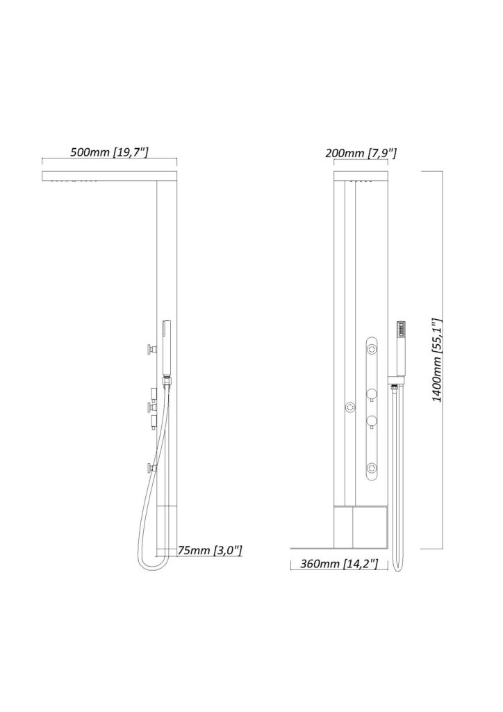 Душевая панель GR027 от Black & White — идеальное решение для вашей ванной комнаты, сочетающее стиль и функциональность. Размеры этой модели составляют 140 x 40 x 50 см. Корпус выполнен из анодированного алюминия и покрыт порошковой краской для дополнительной защиты и долговечности.