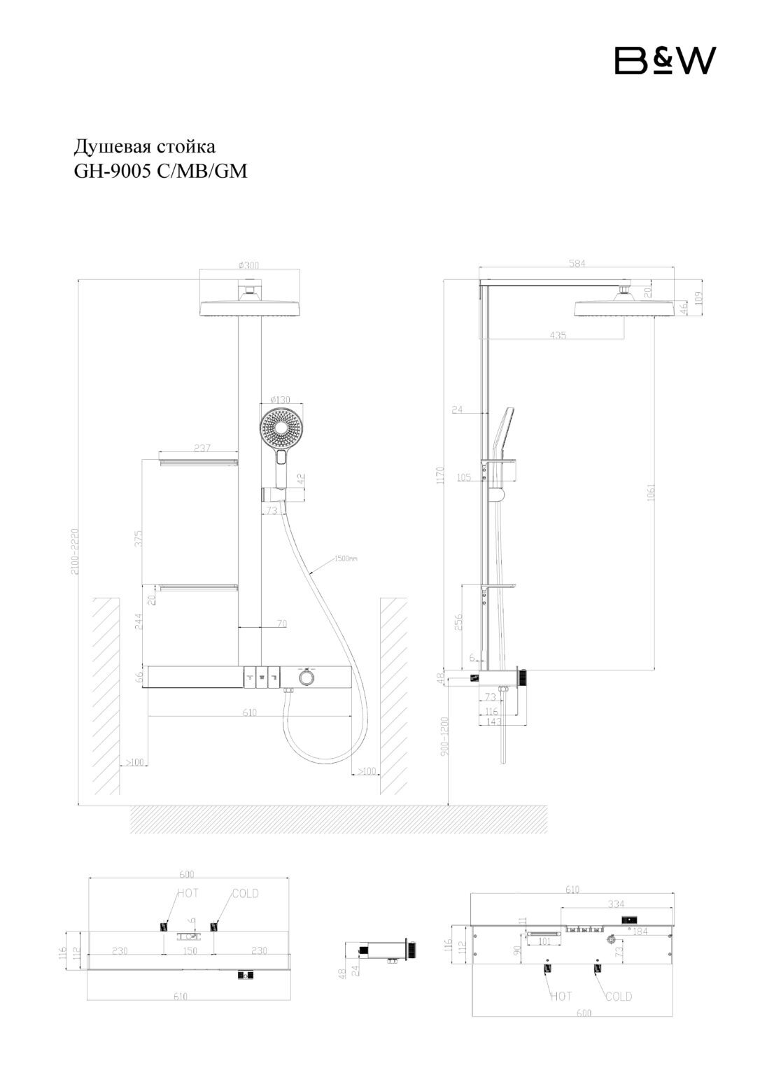 Представляем Вашему вниманию душевую стойку GH-9005C бренда Black&White коллекции GRAVITY, которая станет идеальным дополнением для любого интерьера. Размеры этой модели составляют 610х1221х584 мм. Корпус сделан из латуни, оксидированного алюминия и прочного закаленного стекла. Хромированное покрытие обеспечивает превосходный внешний вид и долговечность. С помощью клавишного переключателя можно легко и удобно переключать функции. Тропический душ диаметром 30см и с каскадным расположением форсунок, позволяет ощутить падение капель как под дождем. Ручной душ имеет три положения для удобства использования. Излив «Водопад» позволяет использовать воду в направленном режиме. Термостатический картридж. Особенностью данной модели является держатель ручного душа с LED-дисплеем 70x24 мм для контроля температуры воды, который обеспечивается термостатическим картриджем, поддерживающим постоянную температуру воды во время принятия душа. Это делает использование стойки ещё более удобным и функциональным. В комплекте также идут две полочки 237x105 мм для хранения необходимых аксессуаров в ванной комнате. Модель GH-9005C не только стильно выглядит, но и делает вашу ванную комнату удобной и функциональной. РАЗМЕР 610 x 1221 x 584 мм. ЦВЕТ / ПОКРЫТИЕ CHROME (Хром) КОРПУС латунь / оксидированный алюминий / закаленное стекло КРОНШТЕЙН ТРОПИЧЕСКОГО ДУША алюминий / нержавеющая сталь, 415 мм. ТРОПИЧЕСКИЙ ДУШ ABS, 300 мм РУЧНОЙ ДУШ / ШЛАНГ ABS, 3 положения, 1500 мм. ИЗЛИВ "ВОДОПАД" фиксированный РЕГУЛИРОВКА НАПОРА - ПЕРЕКЛЮЧЕНИЕ ФУНКЦИЙ клавишное КАРТРИДЖ термостатический ДЕРЖАТЕЛЬ РУЧНОГО ДУША алюминий / закаленное стекло / LED дисплей 70 х 24 х 1140 мм. ПОЛОЧКА 2 шт., 237х105 мм. ПОДКЛЮЧЕНИЕ ВОДЫ 1/2"
