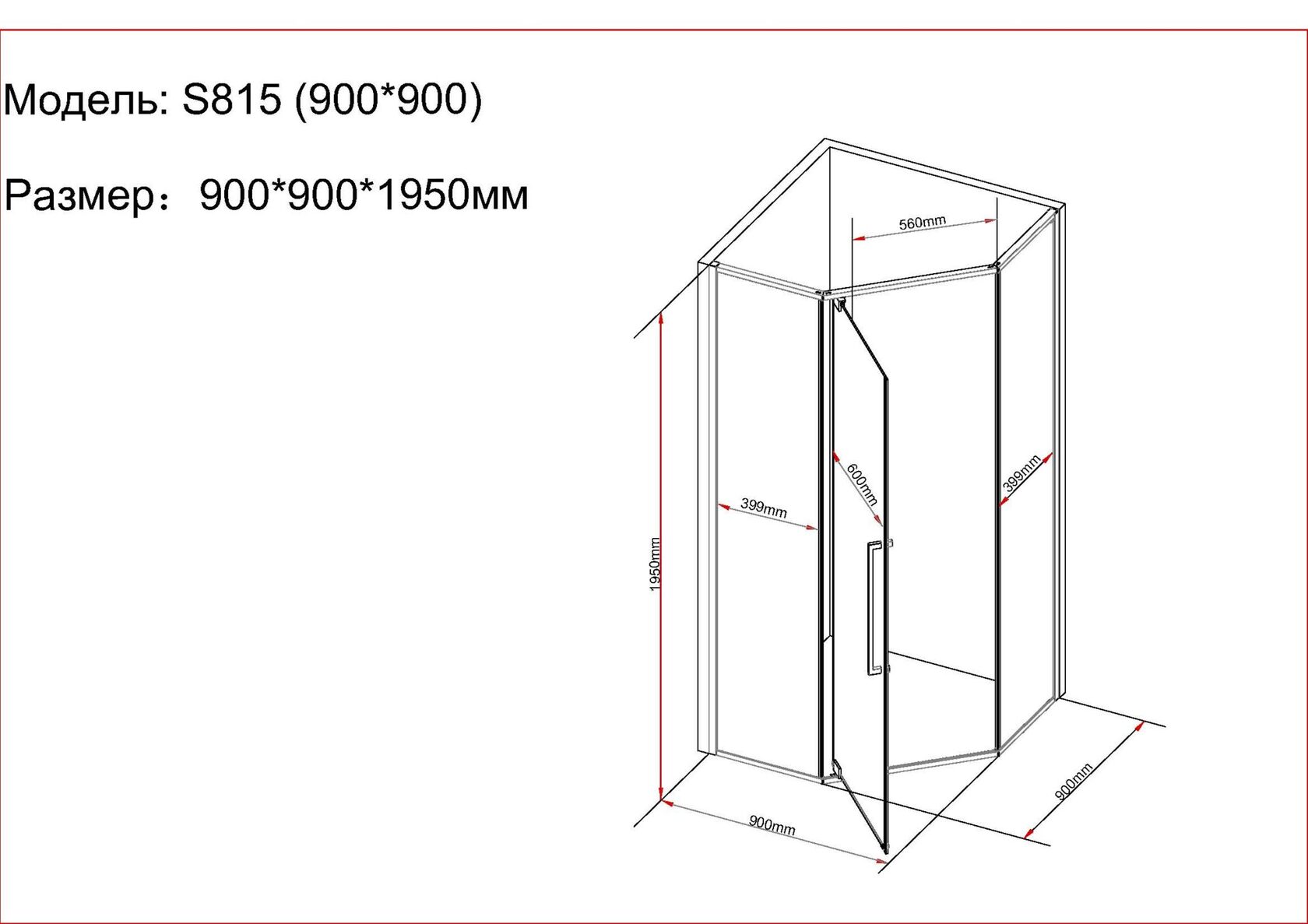 Основные характеристики- Размеры: 90 × 90 × 195 см