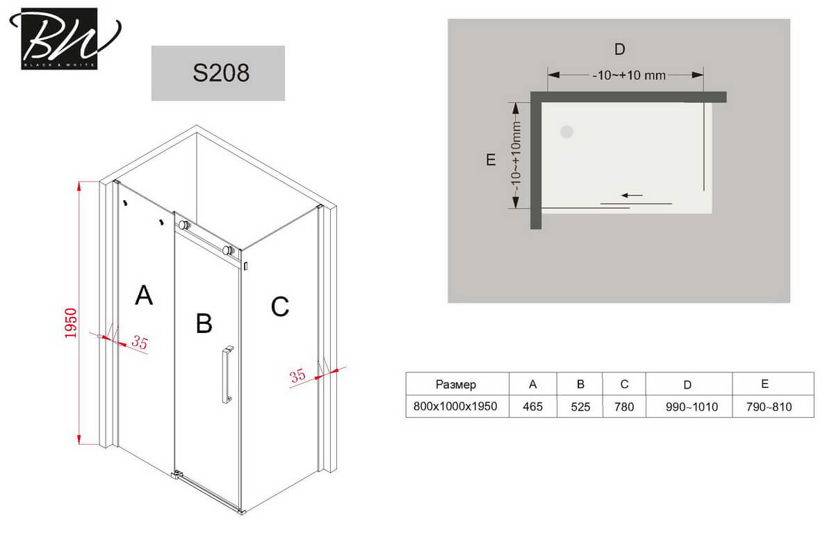 Душевой уголок Black & White S208-80100 — продуманное и стильное решение, которое сочетает практичность и современный дизайн.Основные характеристики- Размеры: 100 × 80 × 195 см
