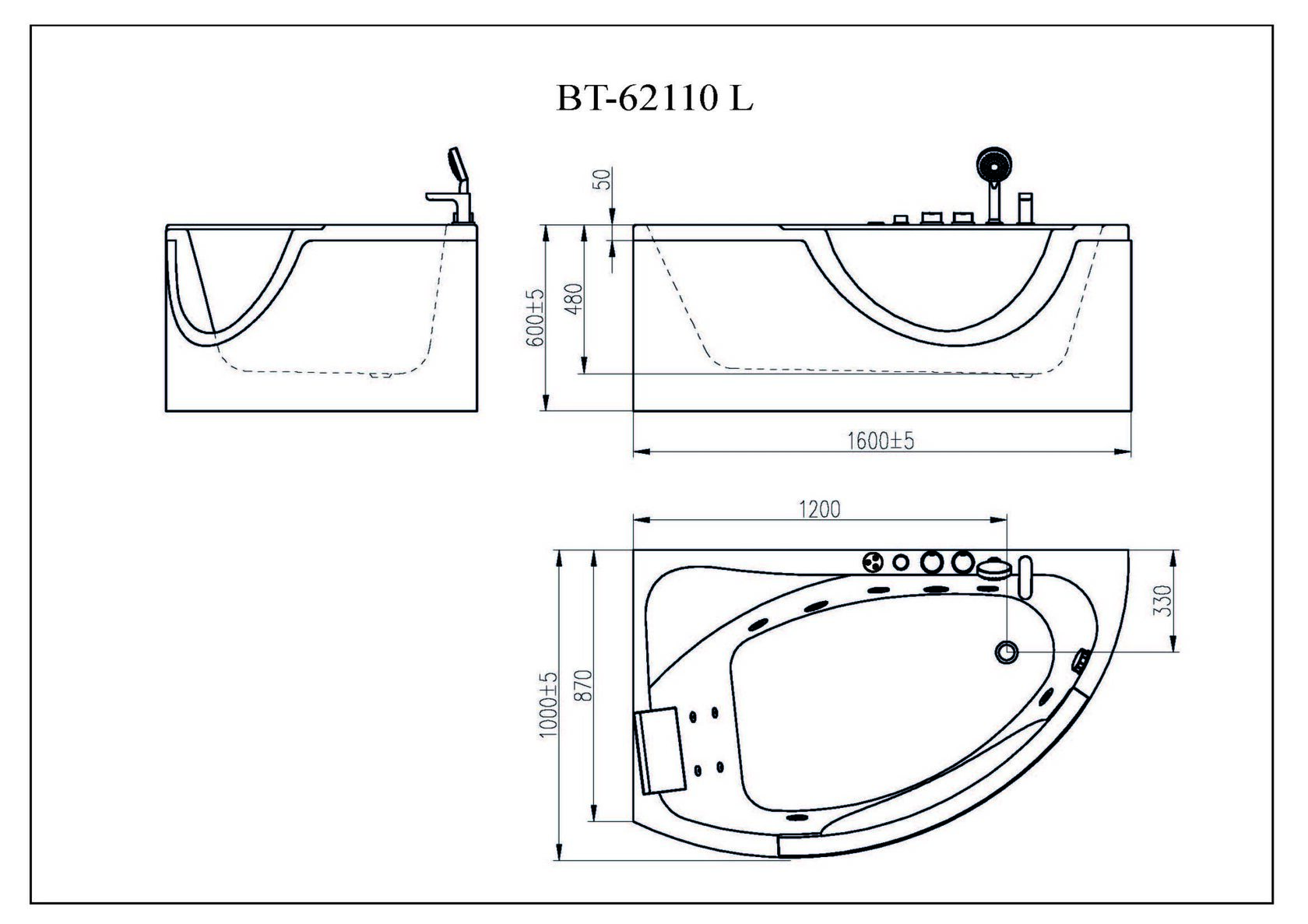 Купить ванну Orans BT-62110 L 160×100 с гидромассажемВ нашем интернет-магазине вы можете