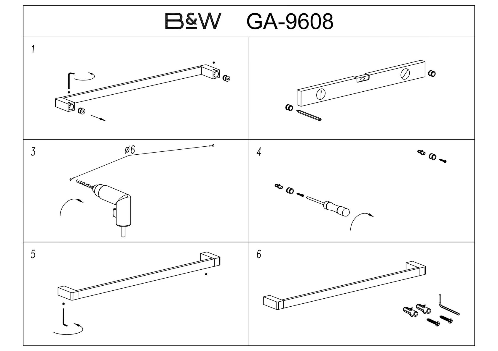 GA-9601 C Крючок универсальный двойной; GA-9603 C Полка и держатель для полотенца; GA-9605 C Держатель для стакана; GA-9607 C Держатель для ёршика; GA-9608 C Держатель для полотенца; GA-9610 C Полка, 30 см.; GA-9615 C Полка, 60 см.; GA-9620 C Полка и держатель для туалетной бумаги; GA-9622 C Полка и двойной держатель для туалетной бумаги.Бренд: Black & White Дания