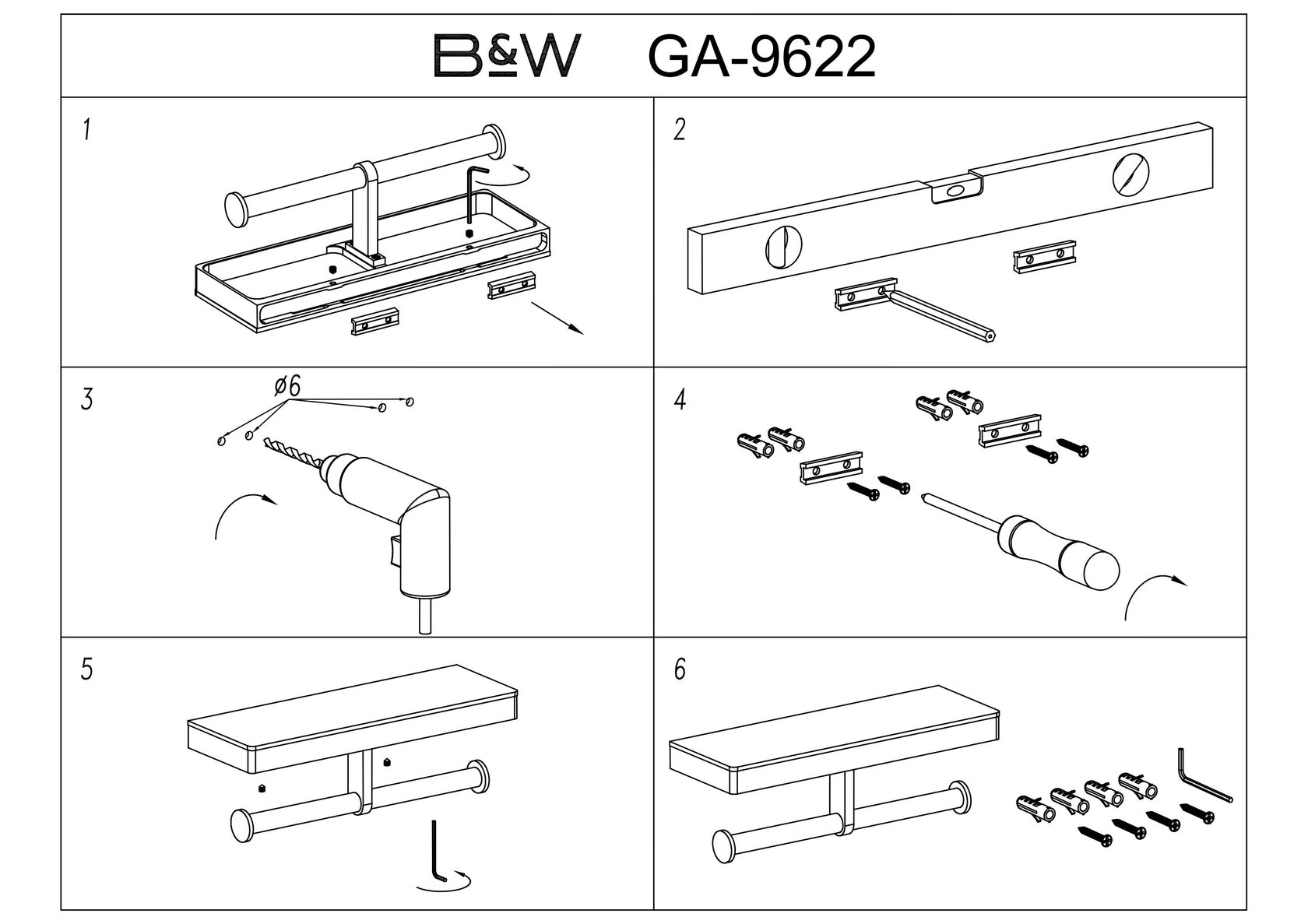 GA-9601 C Крючок универсальный двойной; GA-9603 C Полка и держатель для полотенца; GA-9605 C Держатель для стакана; GA-9607 C Держатель для ёршика; GA-9608 C Держатель для полотенца; GA-9610 C Полка, 30 см.; GA-9615 C Полка, 60 см.; GA-9620 C Полка и держатель для туалетной бумаги; GA-9622 C Полка и двойной держатель для туалетной бумаги.Бренд: Black & White Дания