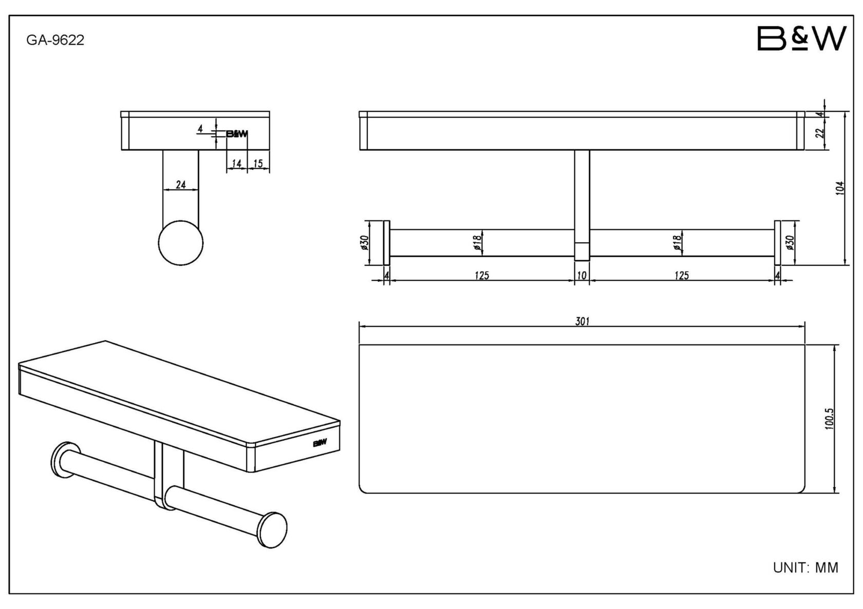 Двойной держатель с полочкой – эргономичное и стильное решение от Black&White. Корпус выполнен из латуни и фиксируется к стене с помощью крепежной планки,а верхняя крышка выполнена из закаленного стекла с белой матовой пленкой.
