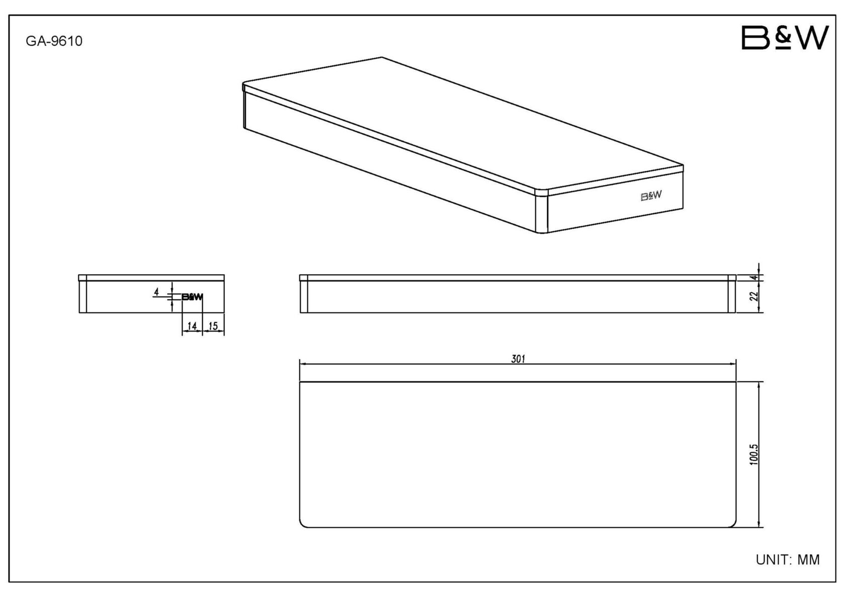 GA-9601 GM Крючок универсальный двойной; GA-9603 GM Полка и держатель для полотенца; GA-9605 GM Держатель для стакана; GA-9607 GM Держатель для ёршика; GA-9608 GM Держатель для полотенца; GA-9610 GM Полка, 30 см; GA-9615 GM Полка, 60 см; GA-9620 GM Полка и держатель для туалетной бумаги; GA-9622 GM Полка и двойной держатель для туалетной бумаги.Бренд: Black & White Дания