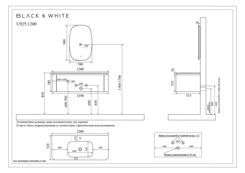Представляем Вашему вниманию стильную, современную и функциональную коллекцию мебели для ванной U925 от популярного бренда Black & White. Эта изысканная коллекция станет настоящим украшением любой ванной комнаты и обеспечит Вам комфорт и удобство на высоком уровне. Модель 925 представлена в четырех популярных размерах - 800, 900, 1000 и 1200 миллиметров, что позволяет подобрать идеальный вариант для любой ванной комнаты. Раковина из кориана с матовой белой столешницей имеет стильный современный дизайн и отличные эксплуатационные характеристики. Она устойчива к воздействию влаги и механических нагрузок, сохраняя свой первоначальный вид в течение многих лет. Материал тумбы - PW - обеспечивает высокую прочность и долговечность мебели, а также устойчивость к воздействию влажности. Цвет тумбы матовый молочно-белый идеально сочетается с общей цветовой гаммой коллекции, создавая гармоничный и стильный образ. Внутри тумбы установлена удобная выдвижная система хранения UniHopper, которая позволит разместить все необходимые принадлежности в легко доступном месте. Изысканное зеркало с подсветкой и сенсорной кнопкой станет настоящим украшением Вашей ванной комнаты. Оно не только обеспечивает качественное освещение, но и обладает функцией антизапотевания для комфортного использования в любых условиях. Цвет тумбы: P01 milk white (матовый молочный белый) Материал тумбы: PW (plywood - влагостойкий 9-ти слойный фанерный лист) Раковина: кориан / белый Столешница: кориан / белый Комплектация: 1 выдвижной ящик, донный клапан push-open хром, LED подсветка столешницы по периметру, датчик движения. Выдвижная система: UniHopper