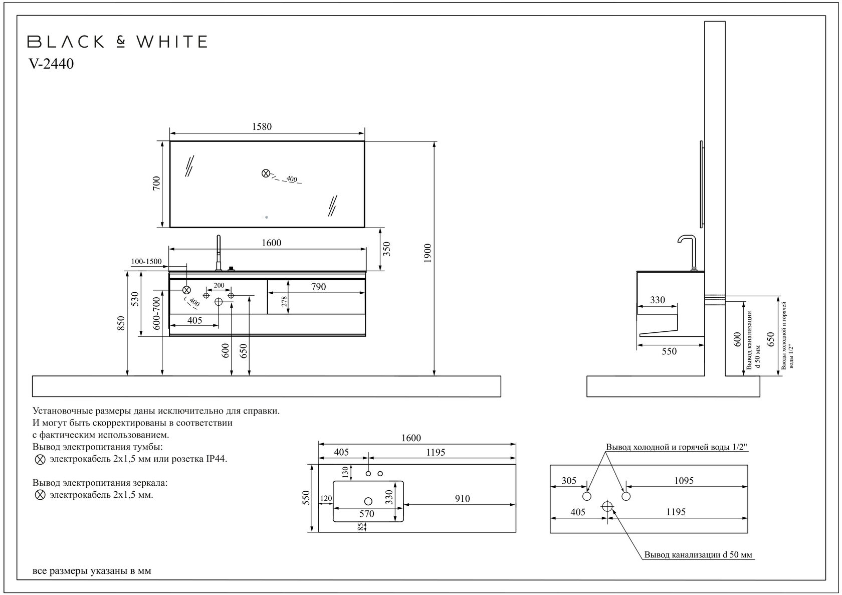 Комплект мебели датского производителя Black&White в габаритных размерах 160x55 см.