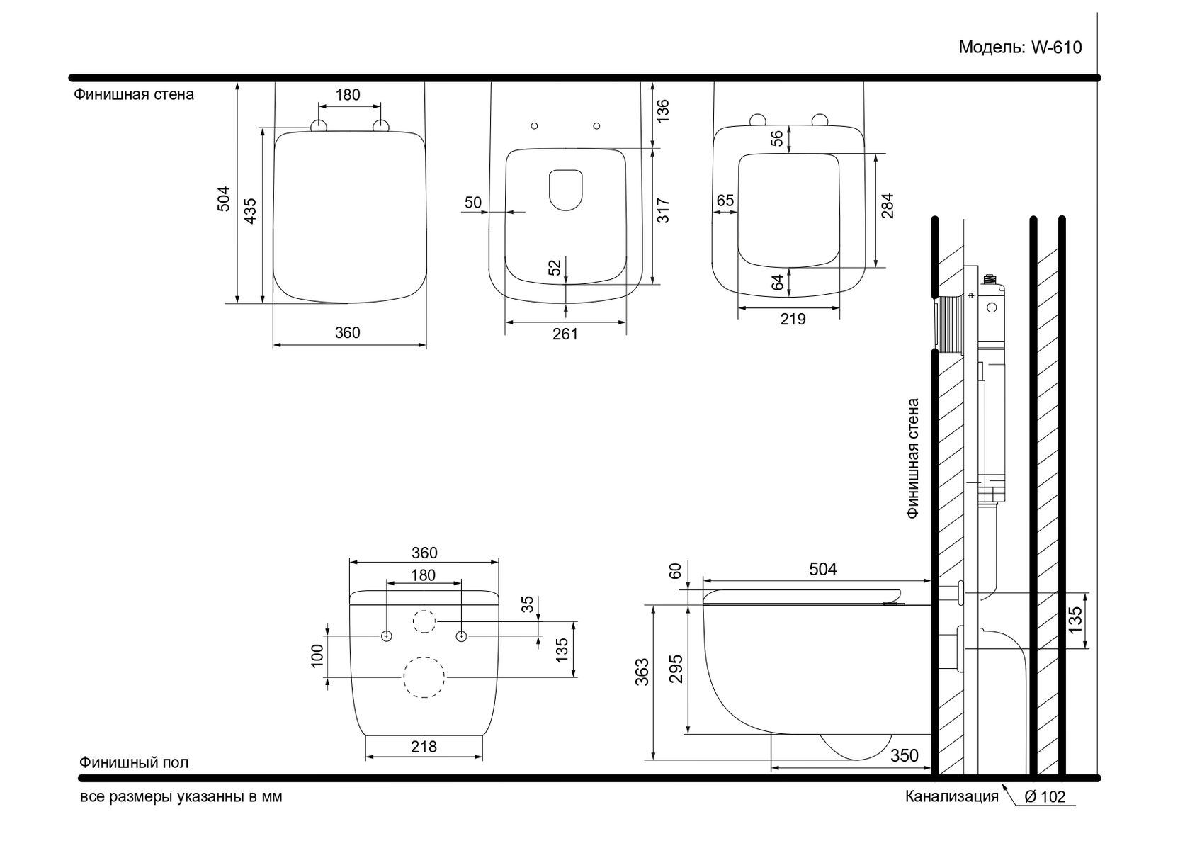 Подвесной унитаз Black & White W-610 — практичное решение для тех, кто ценит чистоту, комфорт и современный стиль в ванной комнате.