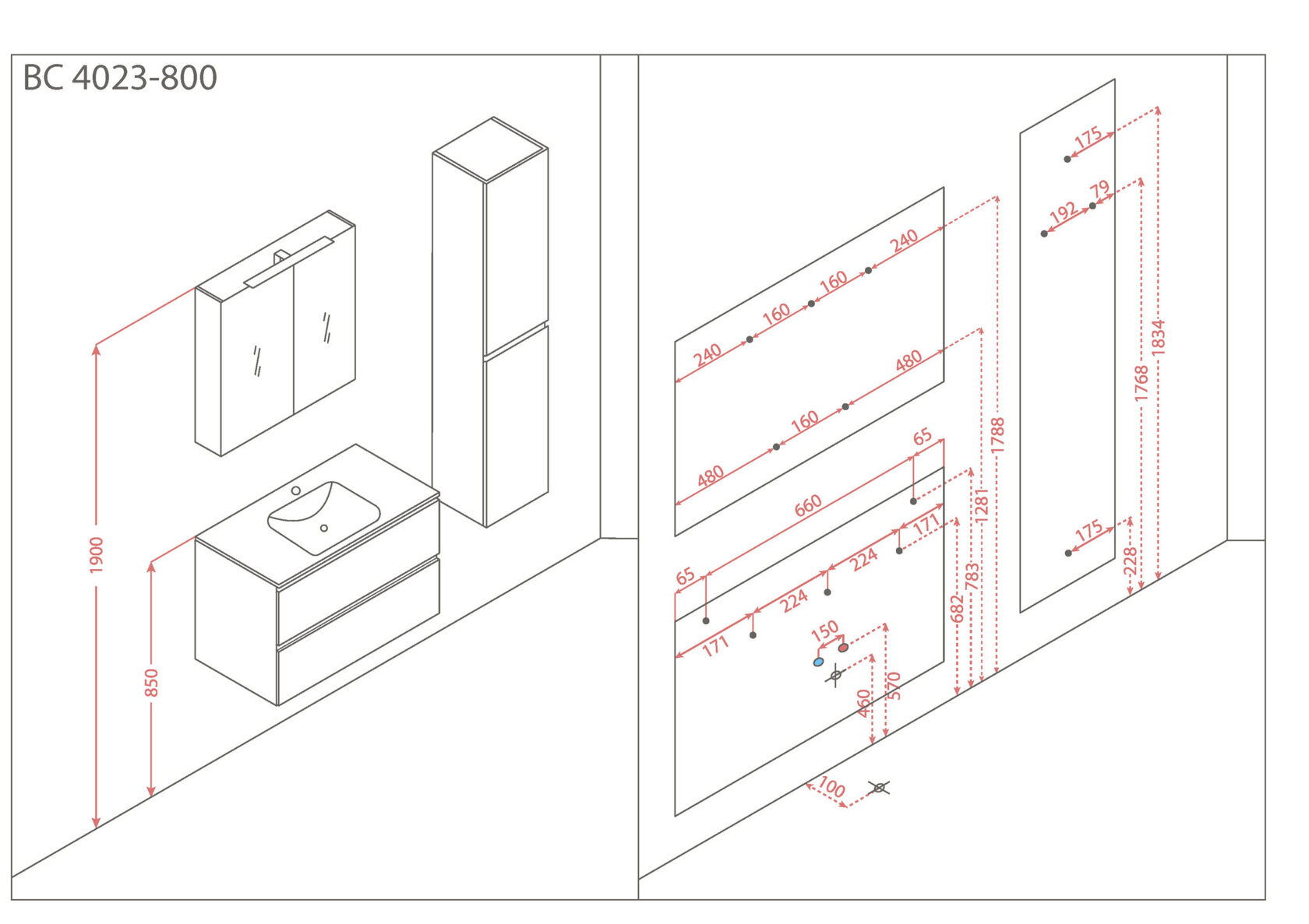 Пенал немецкого производителя Orans в габаритных размерах 174x35 см. Элемент от комплекта мебели BC 4023. Как и база выполнен из влагостойкого МДФ и покрыт белой панелями MFC для исключения попадания влаги на корпус изделия. Для открывания створки используются петли компании DTC с регулировкой – надежно. Важной особенностью можно отметить возможность установки пенала под левое и правое открывание с помощью перестановки петель.