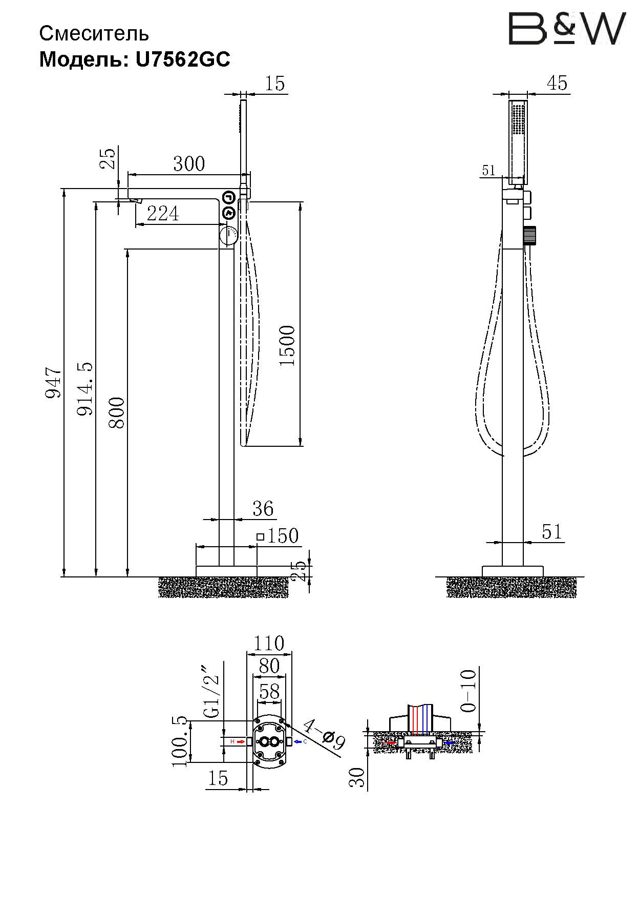 Изысканный смеситель для ванной с кнопочным управлением и режимом имитации «Водопад», который позволит Вам каждый день испытывать абсолютно иные ощущения от принятия банных процедур и позволит с головой окунуться в ощущения единения с природой. Использование нестандартных механизмов и материалов — это то, что является отличительной особенностью продукции B&W и способом подарить каждому клиенту уникальные ощущения. Размер 300 х 51 х 947 мм. Цвет Темно-серый матовый, "Гранит" Материал декора - Корпус Латунь Н59-3 Ручной душ ABS Шланг для душа Нержавеющая сталь Излив Аэратор Neoperl Тип смесителя Кнопочный, без регулировки напора воды