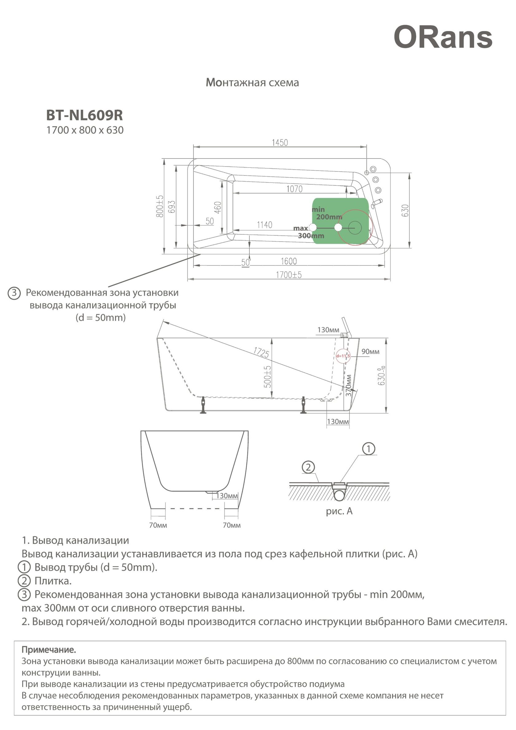 Отдельностоящая ванна немецкого производителя Orans. Выполнена из 100% акрила марки Lucite с дополнительной армировкой и установлена на каркас из нержавеющей стали SUS 204– все компоненты высокого качества. Стиль продукта – минимализм с правильными формами, который разработали итальянские дизайнеры . В комплектацию входит блок смесителей с вытяжной лейкой и встроенный в стенку каскадный излив, подключение и обслуживание осуществляется через лючок встроенный в борт ванны и фиксирующийся на магнитах. Также в комплекте поставляется слив - перелив с донным клапаном. Спинка с анатомическим углом наклона, что позволяет получить комфорт и расслабление во время водных процедур. NL 609– продуманный,оснащенный и эффектный продукт , который наполнит ванную комнату шармом и функциональностью.