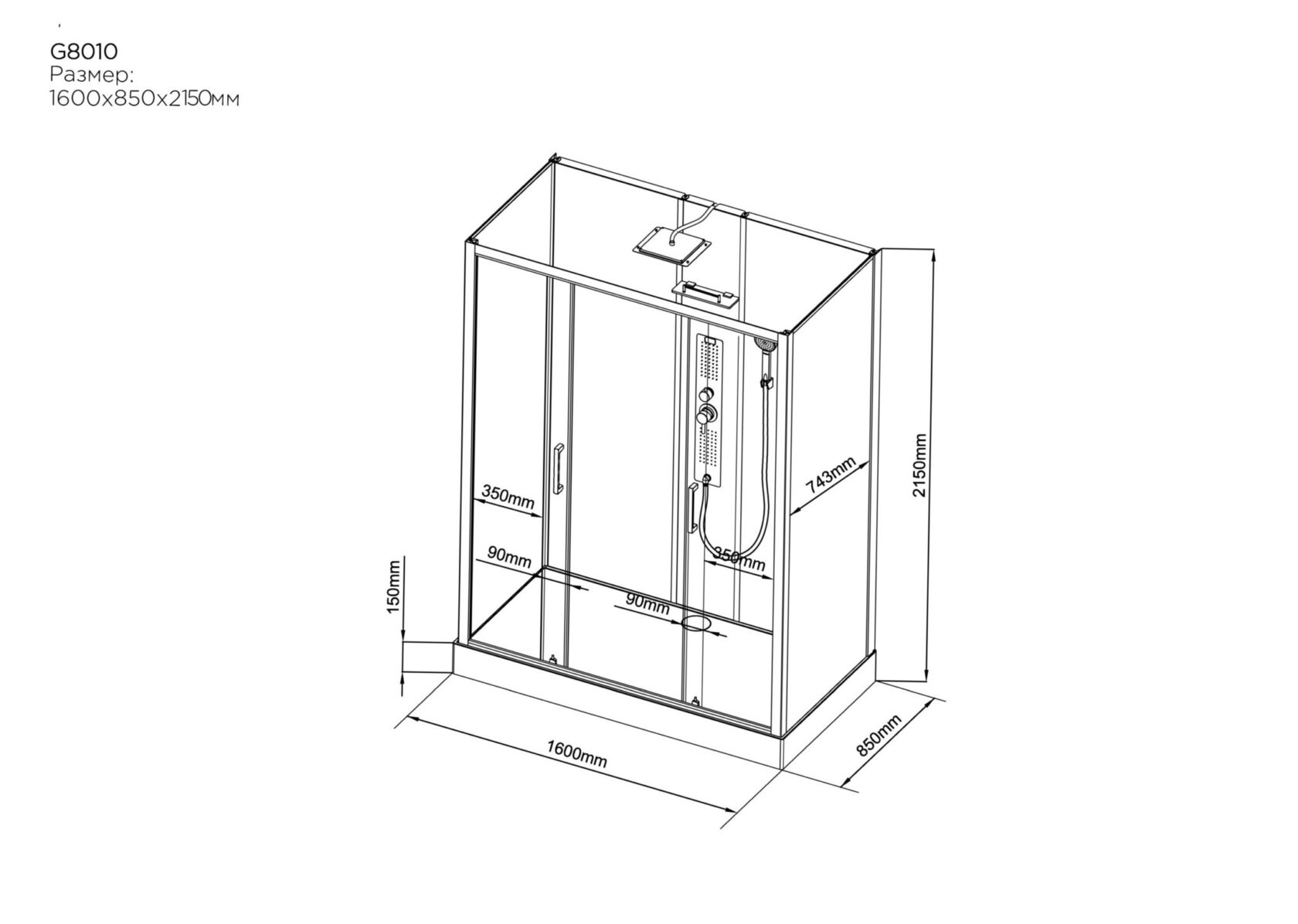 Размер: 1600 х 850 х 2150 мм