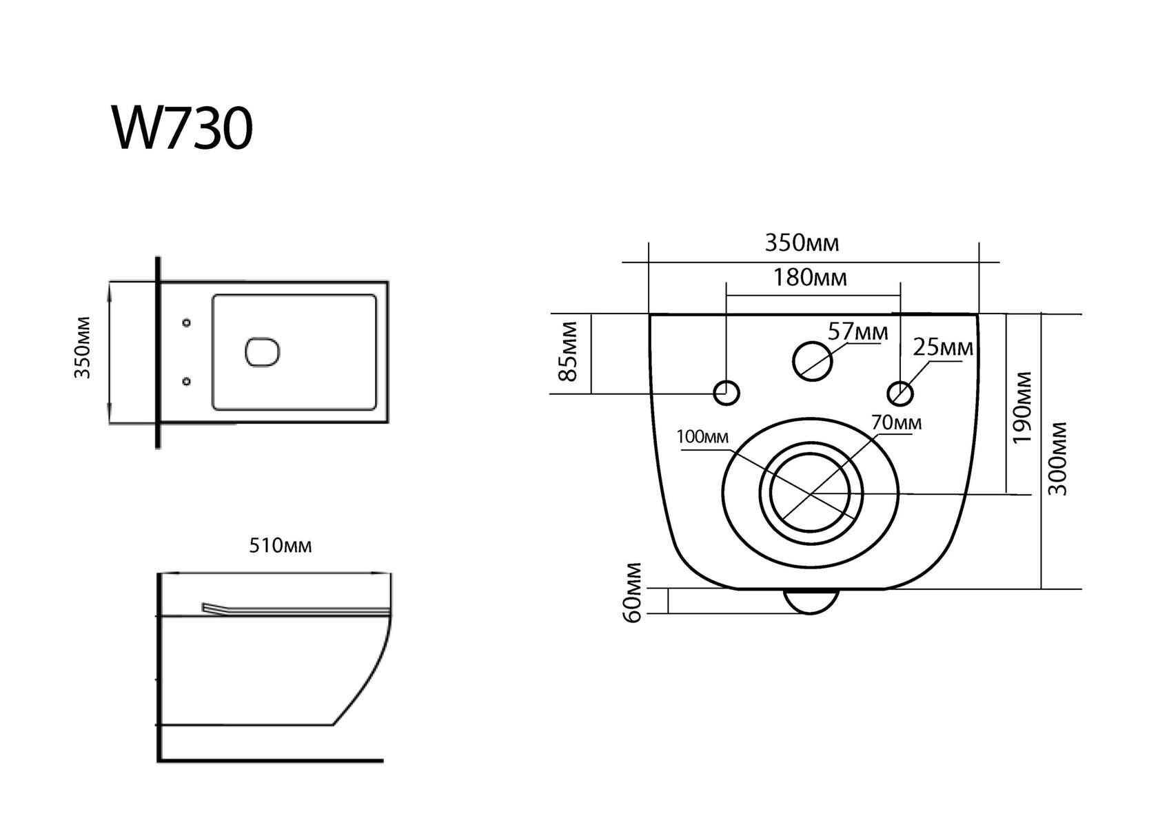Размер 510 х 350 х 360 мм. (Д х Ш х В) Форма чаши и сиденья Прямоугольная Материал чаши Сантехнический фарфор Материал сиденья Slim дюропласт Механизм плавного опускания Soft Close, быстросъемный Фурнитура Хромированная Выпуск Горизонтальный Покрытие Грязеотталкивающее, Anti-DirtБренд: Black & White Дания