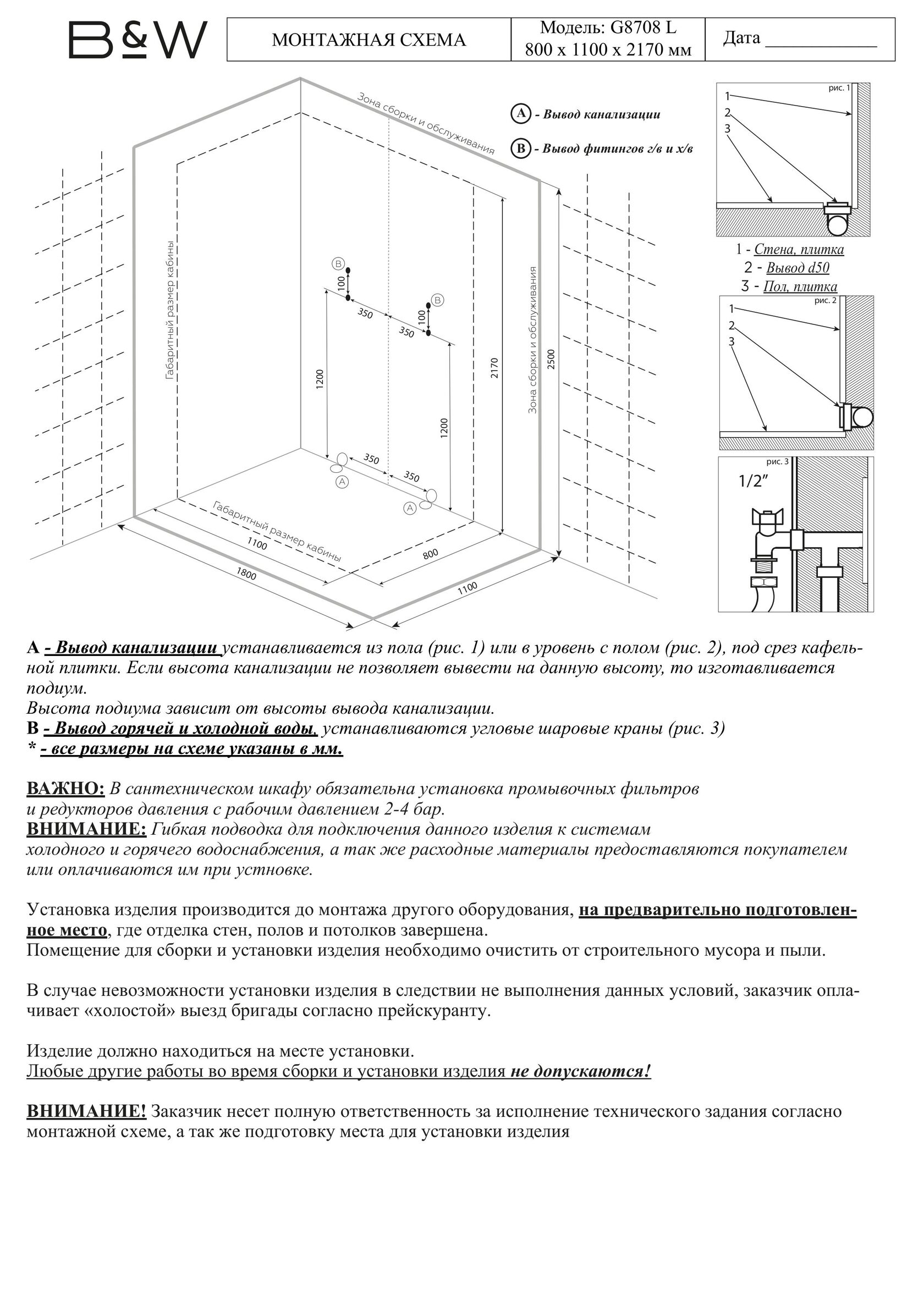Пристенная душевая кабина в размере 110x80 см. от европейского производителя Black&White. Матовое заднее остекление в комбинации с прозрачными передними стенками, черным профилем и элементами гидротерапии – контрастное и эксклюзивное сочетание в Вашей новой ванной комнате. Изделие не оснащается крышей, во время принятия душа внутри сохраняется приятная температура и отсутствует излишнее количество пара. Дверное полотно перемещается с помощью двух спаренных роликов сверху, снизу – по специальной направляющей, это положительно сказывается на ресурсе механизмов и снижает уровень шума. Для комфортного принятия водных процедур есть все необходимое: Верхний и ручной однорежимный душ, панель гидромассажа, за регулировку и температуру воды отвечают смеситель и регулятор с эргономичными ручками выполненными из сантехнической латуни. Для хранения душевых принадлежностей доступна стеклянная полочка установленная по центру зеркала.