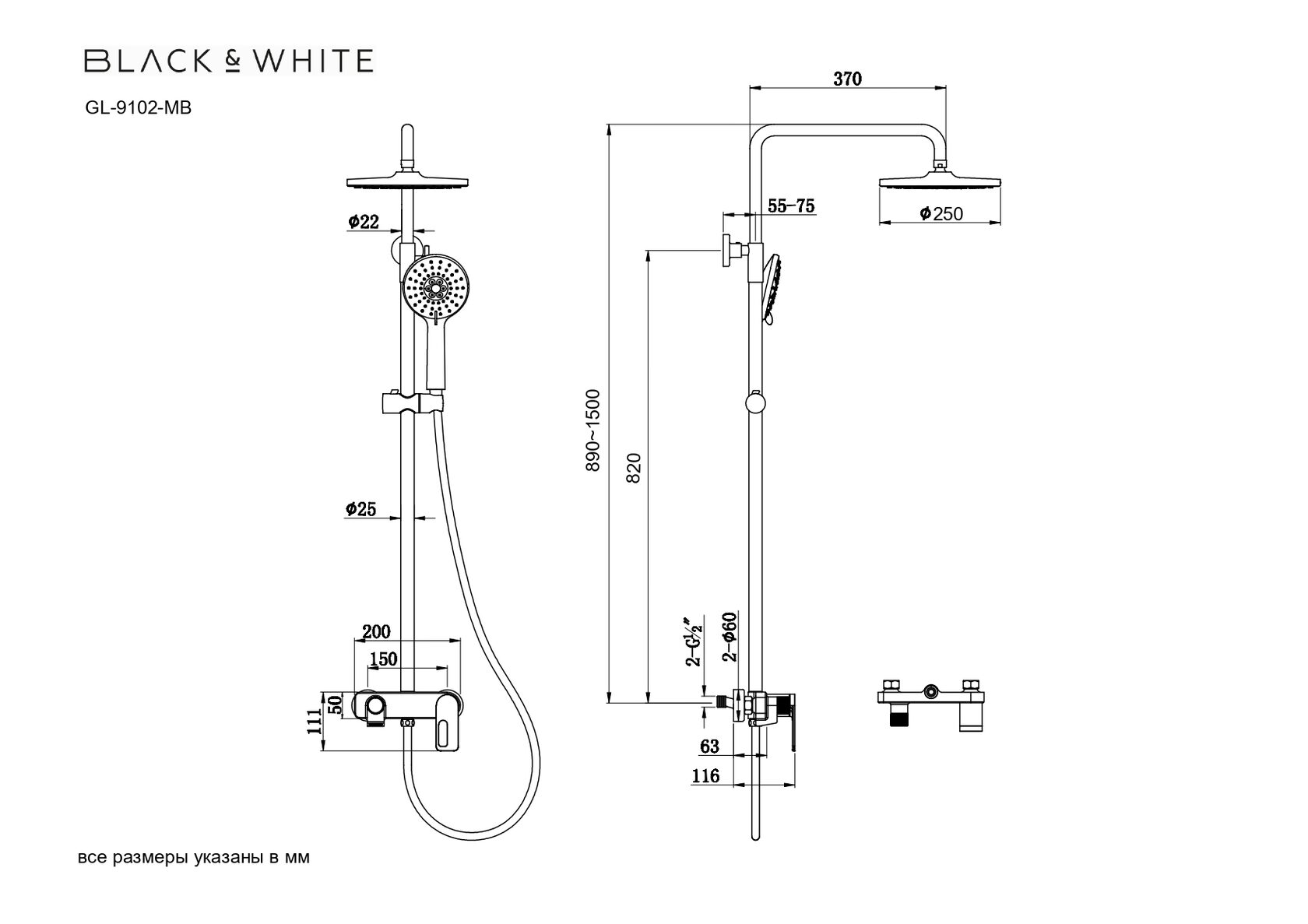 Душевая стойка производителя Black&White черного матового цвета. Корпус изделия изготовлен из сантехнической латуни, материал высокоресурсный и безопасный для здоровья. Управление потоками воды осуществляется с помощью керамического картриджа повышенной пропускной способности. Из потребителей на стойке установлен верхний душ, ручная лейка с режимами и излив, интегрированный в фронтальную часть корпуса. Для выбора режима работы установлен поворотный механический дивертор цилиндрической формы с насечками на корпусе для удобства использования мокрыми руками. Простые геометрические линии продукта гармонично встроятся в лаконичные интерьеры ванной комнаты.