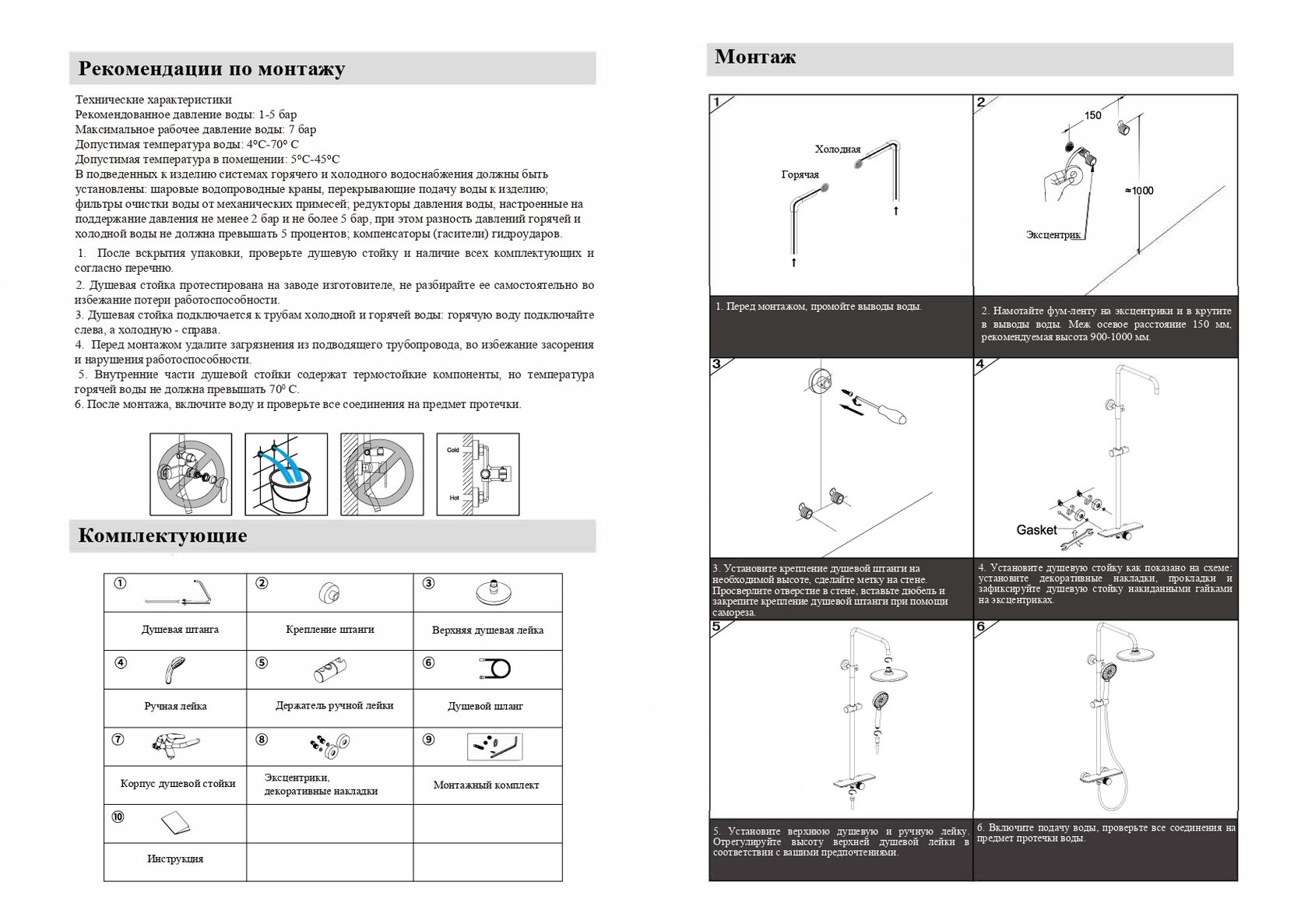 Душевая стойка от датского производителя Black&White в цвете глянцевый хром. Корпус штанги и смесителя производится из латуни марки HPB 59– безопасный для здоровья сплав, выдерживающий высокое давление воды. Для управления потоками и температурой установлен прогрессивный картридж без регулировки давления, для экономии воды, а также в данной серии переключатель режимов установлен сразу за картриджем в виде кольца c продольными насечками – нетривиальное решение, которое облегчает уборку. Верхняя крышка смесителя стилизована под белый мрамор с прожилками. Из потребителей установлен верхний и ручной душ, а также излив для наполнения емкостей.