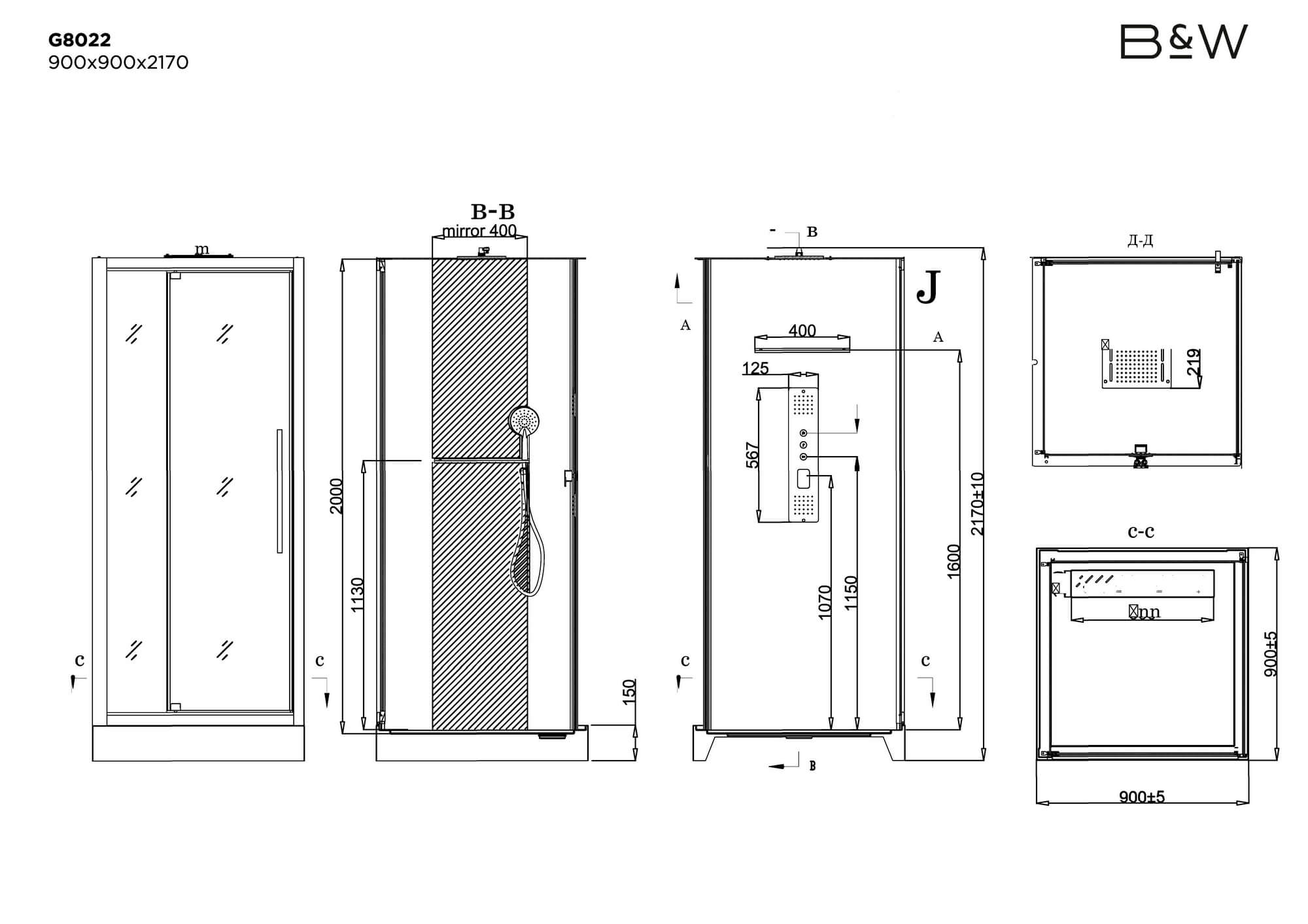 Размер: 900 х 900 х 2150 мм