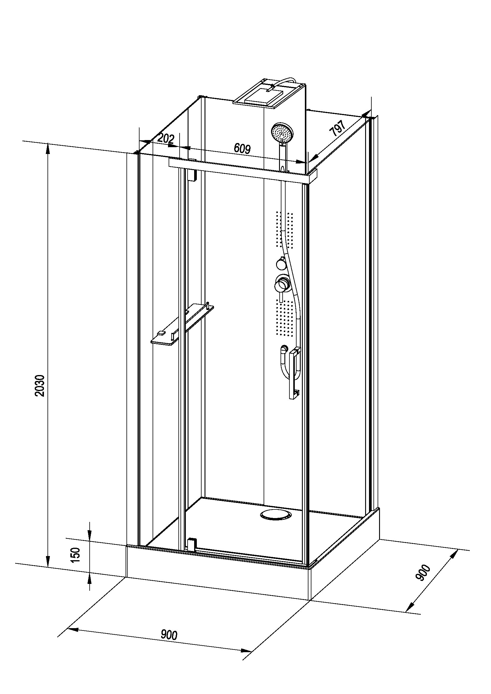 Основные характеристики- Размеры: 90 × 90 × 217 см