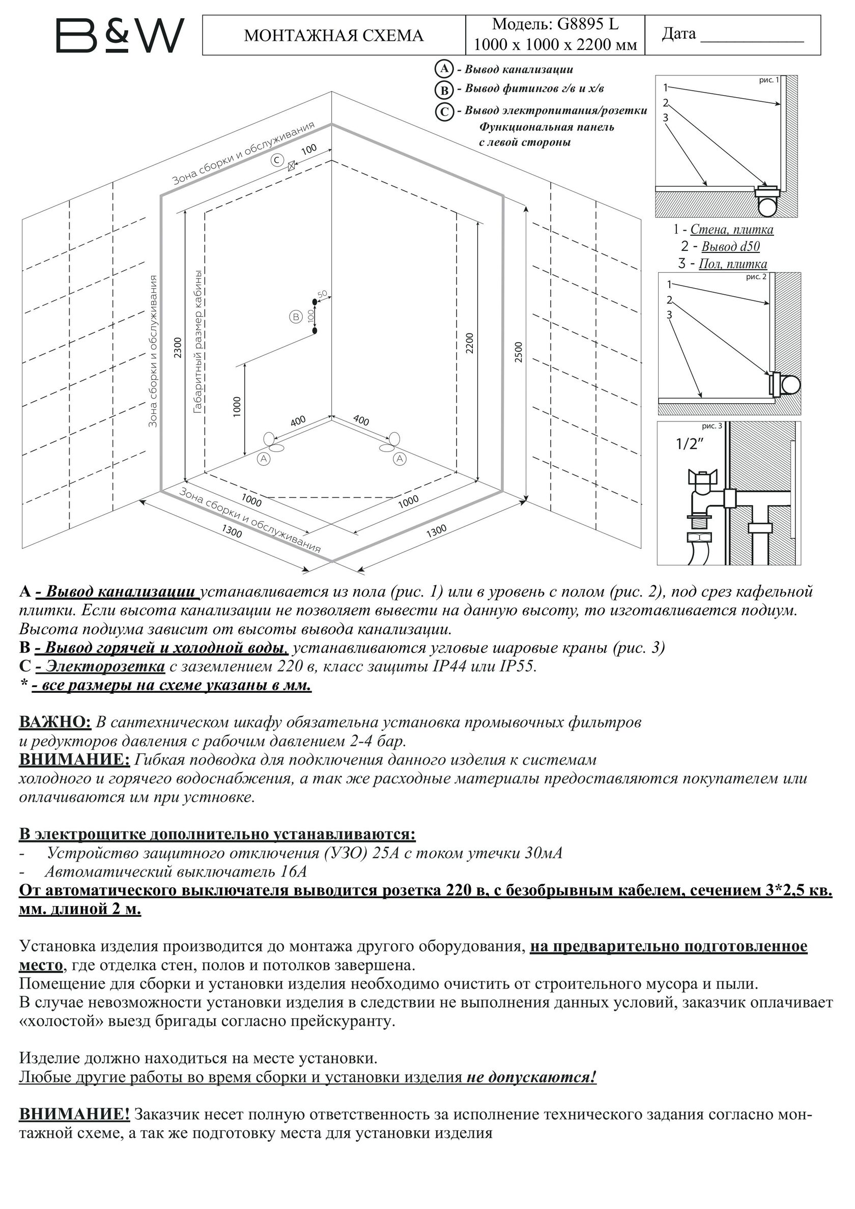 РАЗМЕР 1000 х 1000 х 2200 ВЫСОТА ПОДДОНА белый, 150 мм АНОДДИРОВАННЫЙ АЛЮМИНИЕВЫЙ ПРОФИЛЬ хром РЕВЕРСИВНАЯ МОДЕЛЬ да ТИП ДВЕРЕЙ распашные, 6 мм СТЕКЛА 5 мм / "Super White", 5 мм КРЫША "Super White", 5 мм ЗЕРКАЛО интегрировано в стекло ТРОПИЧЕСКИЙ ДУШ 325 х 290 мм РУЧНОЙ ДУШ 3 режима ДУШЕВОЙ ШЛАНГ с защитой от перекручивания ЭЛЕКТРОННАЯ ПАНЕЛЬ УПРАВЛЕНИЯ BLUETOOTH (принятие звонков), ВЕНТИЛЯЦИЯ, FM-РАДИО, ОЗОНАЦИЯ, ТРЕВОЖНАЯ КНОПКА ВЕРХНЯЯ ПОДСВЕТКА LED белый цвет ДОННЫЙ КЛАПАН хромированный БЫСТРАЯ СБОРКА БЕЗ СИЛИКОНА да МОЩНОСТЬ ПАРОГЕНЕРАТОРА 3 кВтБренд: Black & White Дания