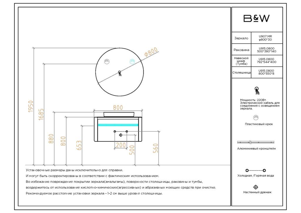 - В комплекте: тумба, раковина, столешница, донный клапан Push‑open, комплект крепежа с планкой, инструкция по установке (зеркало и смеситель приобретаются отдельно)