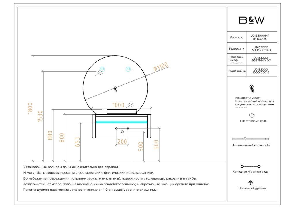 Тумба с раковиной Black & White U916 1000Современный минимализм с акцентом на функциональностьОписаниеТумба Black & White U916 1000 — это воплощение современного минимализма и функциональности. Изготовленная из влагостойкого МДФ с эмалевым покрытием, она обеспечивает долговечность и устойчивость к воздействию влаги. Столешница выполнена из керамогранита, стилизованного под натуральный мрамор, что придаёт изделию изысканный вид. Полувстраиваемая раковина из сантехнического фарфора с низкими бортами позволяет устанавливать смеситель любой высоты, обеспечивая удобство использования. Система выдвижных ящиков с доводчиками обеспечивает плавное и бесшумное открывание и закрывание.