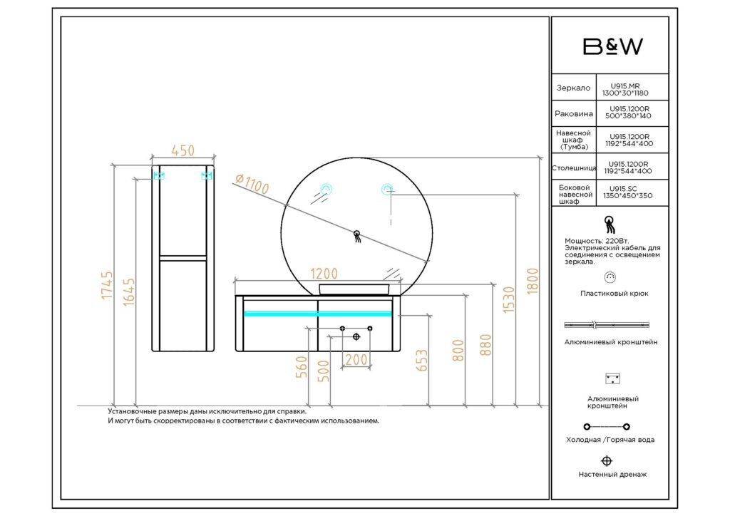 Тумба с раковиной Black & White U915 1200RСкандинавский дух и утончённость в большой подвесной тумбеОписаниеТумба U915 200R от бренда Black & White — это мебель, которая сочетает лаконичность, скандинавский стиль и функциональность. Столешница из сверхтонкого керамогранита, стилизованного под натуральный мрамор, с изящными прожилками — эффектный акцент, который привлекает внимание. Полувстраиваемая белая раковина из сантехнического фарфора с низкими бортами позволяет установить смеситель любой высоты, делая интерьер гибким к стилю и удобству. База из влагостойкого МДФ, покрытая эмалью светло серого цвета, подчёркивает чистоту линий, а система выдвижных ящиков Blum Slim обеспечивает надёжность и удобство в повседневном использовании.