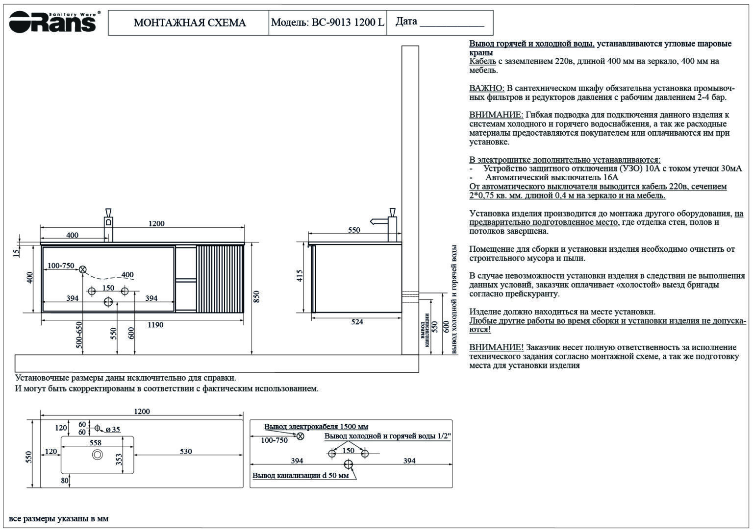 Преобразите вашу ванную комнату с тумбой Orans BC-9013-1200L — оформляйте заказ прямо сейчас и наслаждайтесь комфортом и стилем!
