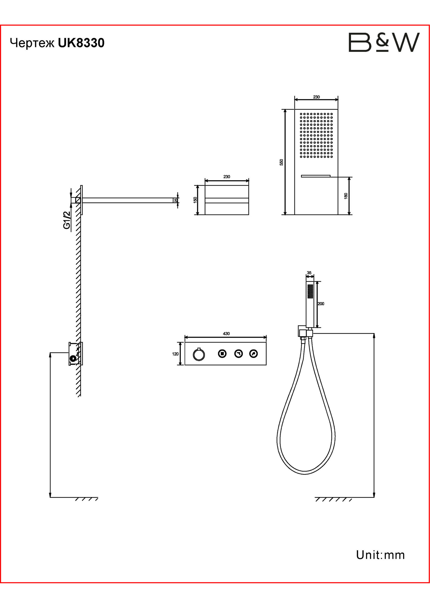 Встроенная душевая система Black&White UK8330B