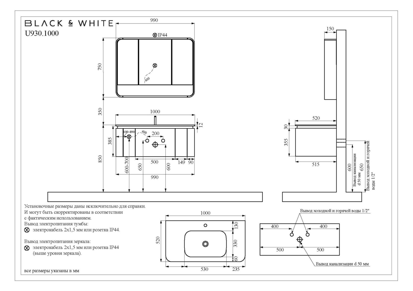 Зеркальный ящик из коллекции U 930 компании Black&White. Корпус изготовлен из влагостойкой девятислойной фанеры и окрашен эмалью, а отсутствие острых углов по периметру пересекается с концепцией основной тумбы. Для хранения косметических принадлежностей предусмотрены три распашных ящика с зеркальными фасадами, а также открытая полочка в ширину всего изделия. Петли для открывания фасадов установлены фирмы UniHopper.Зеркальный ящик U 930– готовое решение для хранения гигиенических принадлежностей и наполнения стилем Вашей ванной комнаты.