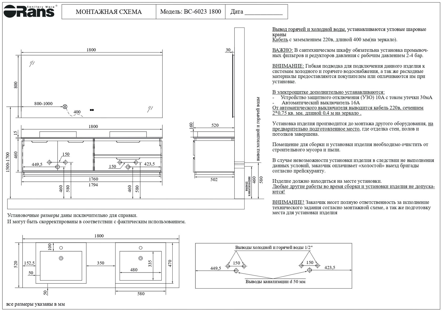 Зеркальное полотно из линейки Orans 6023 в габаритных размерах 180x80 см. Изделие оборудовано контурной диодной подсветкой, а также принудительным включением функции антизапотевания.